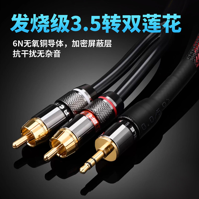 JIB德国蟒蛇进口HIFI高端发烧级一分二3.5MM转2RCA双莲花头AUX音频线6N单晶铜镀银加单晶铜绞合线芯BEB2007