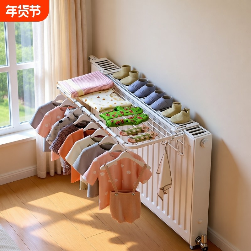 暖气片晾衣架挂架暖气管上方置物架家用小型鞋子衣服烘干晾衣神器