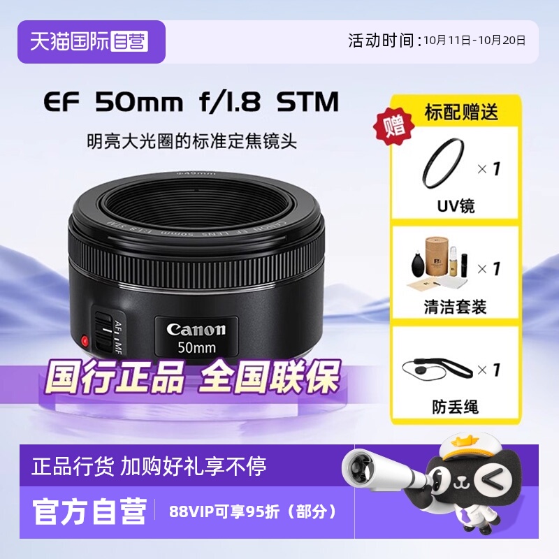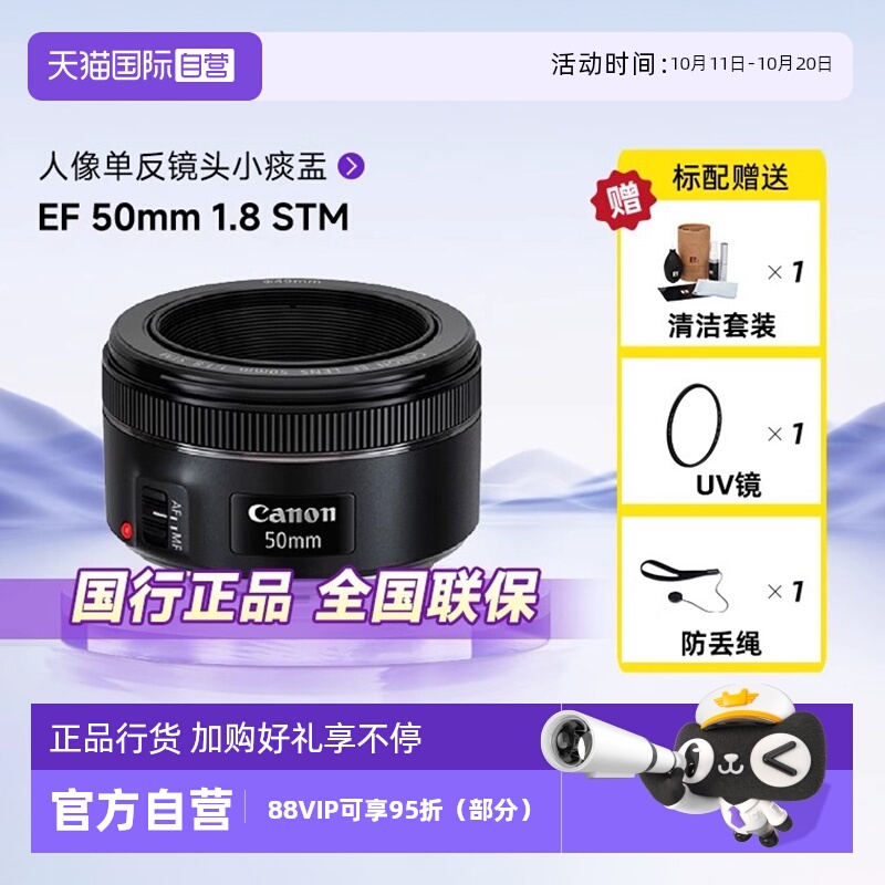 【自营】Canon/佳能 EF 50mm 1.8 STM 定焦镜头人像单反小痰盂