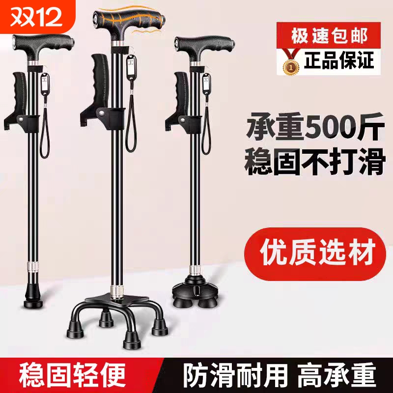 老人拐杖老年人专用拐棍四脚轻便防滑手杖防摔倒捌杖伸缩带灯登山
