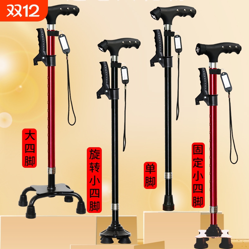 老人拐杖四脚轻便防滑手杖老年人多功能带灯拐棍捌杖助步器捌杖头