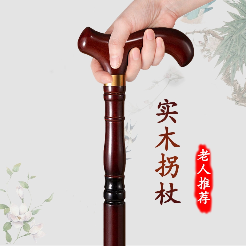 拐杖老人防滑轻便实木老年人防摔倒拐棍四脚专用助力手杖木头女士