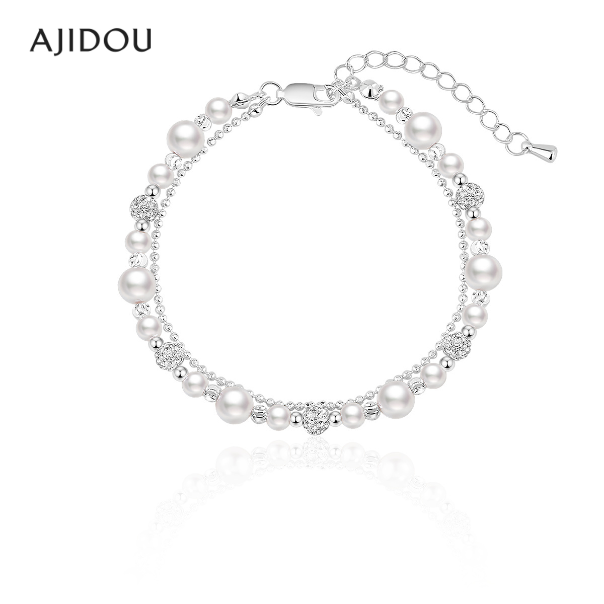 AJIDOU阿吉豆手链女款珍珠双层叠戴满天星手串轻奢高级感串珠手饰