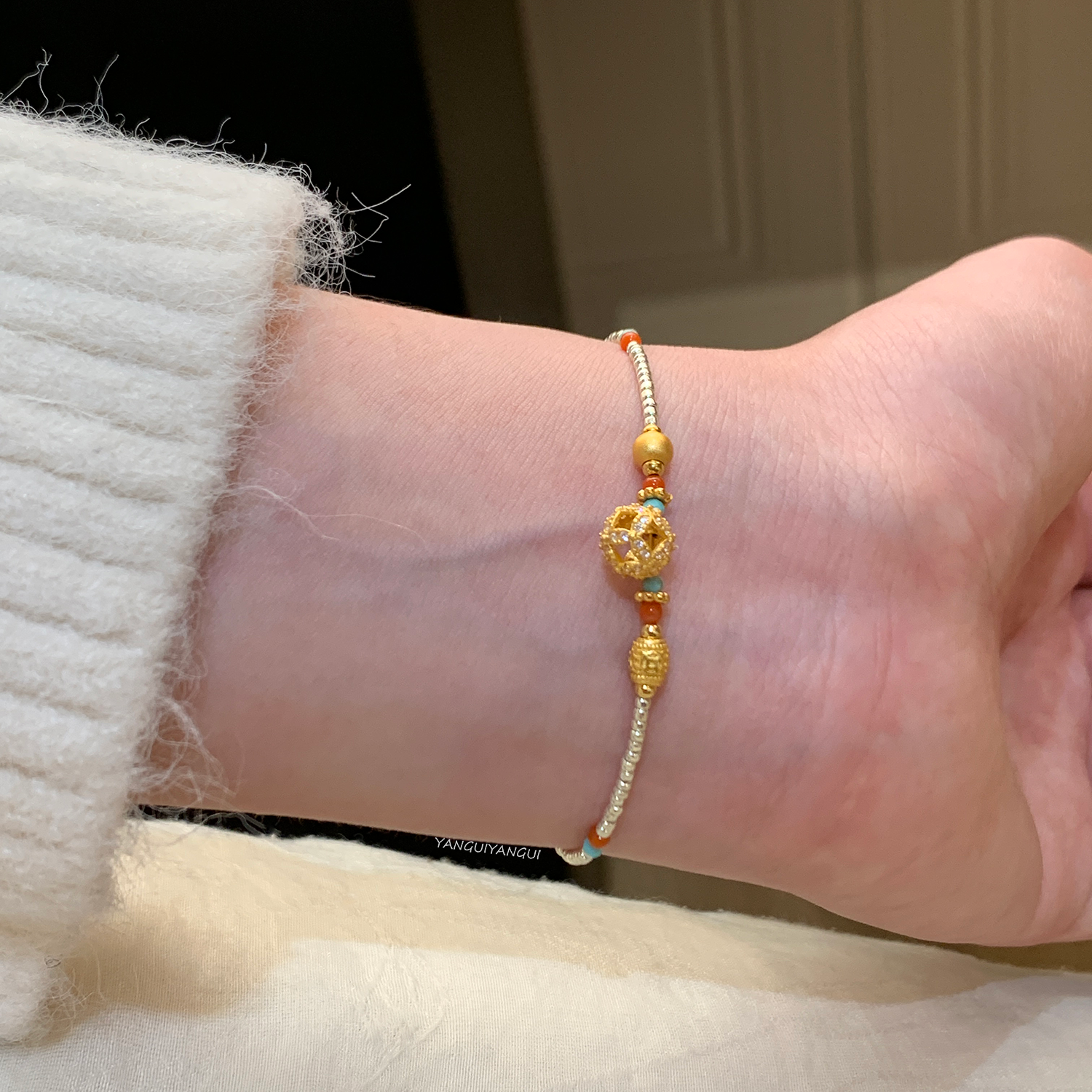 Yangui原创「秋缕香」国风新中式纯银s925南红绿松古董珠百搭手链