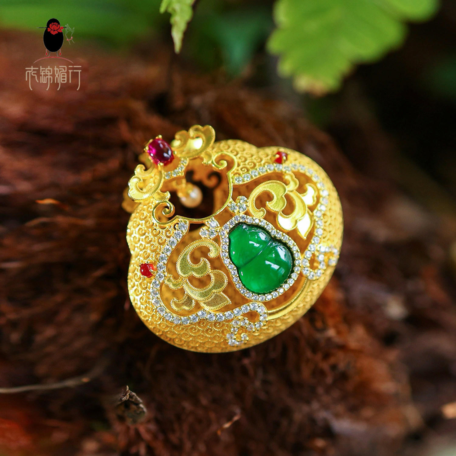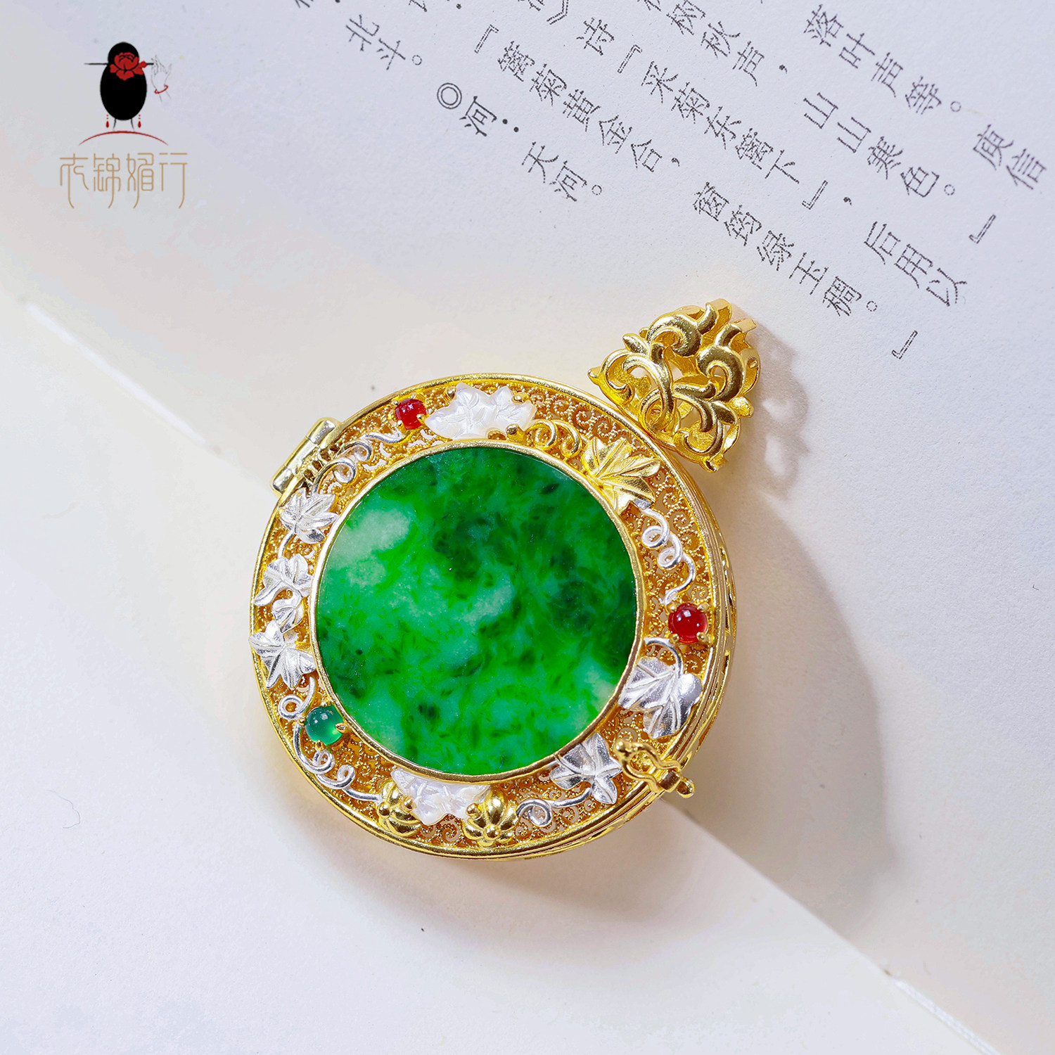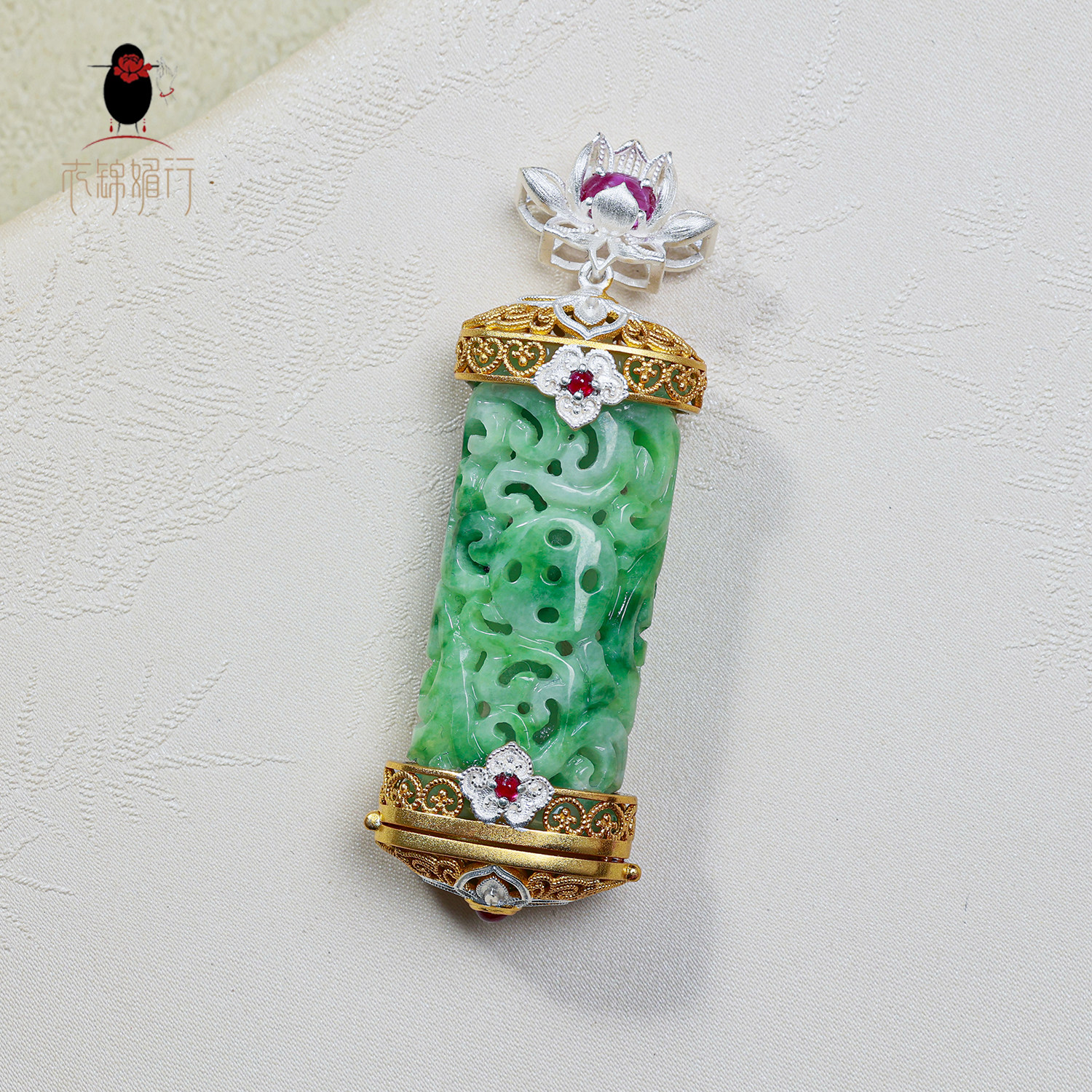衣锦媚行原创设计s925银镀金翡翠雕花镂空香囊吊坠宫廷风莲花项坠