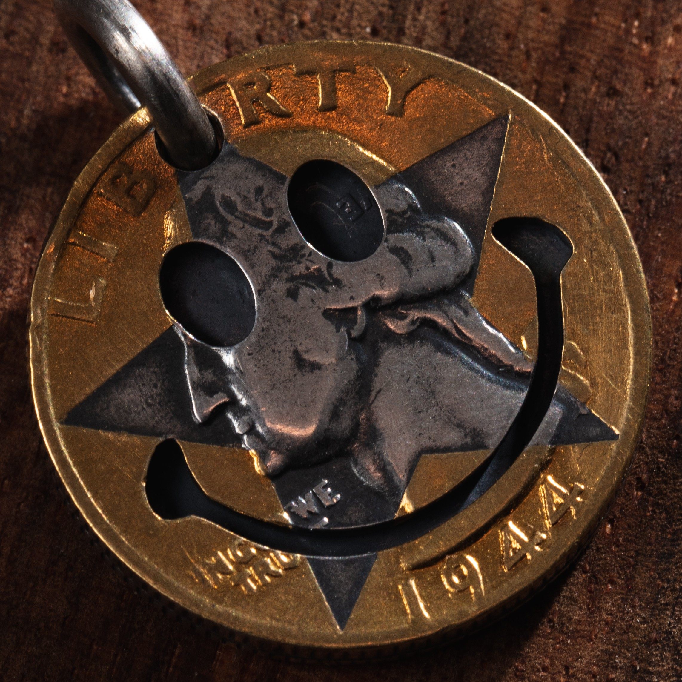 NORTH WORKS 日本手作古董银币铜币改造吐舌星星眼笑脸项链