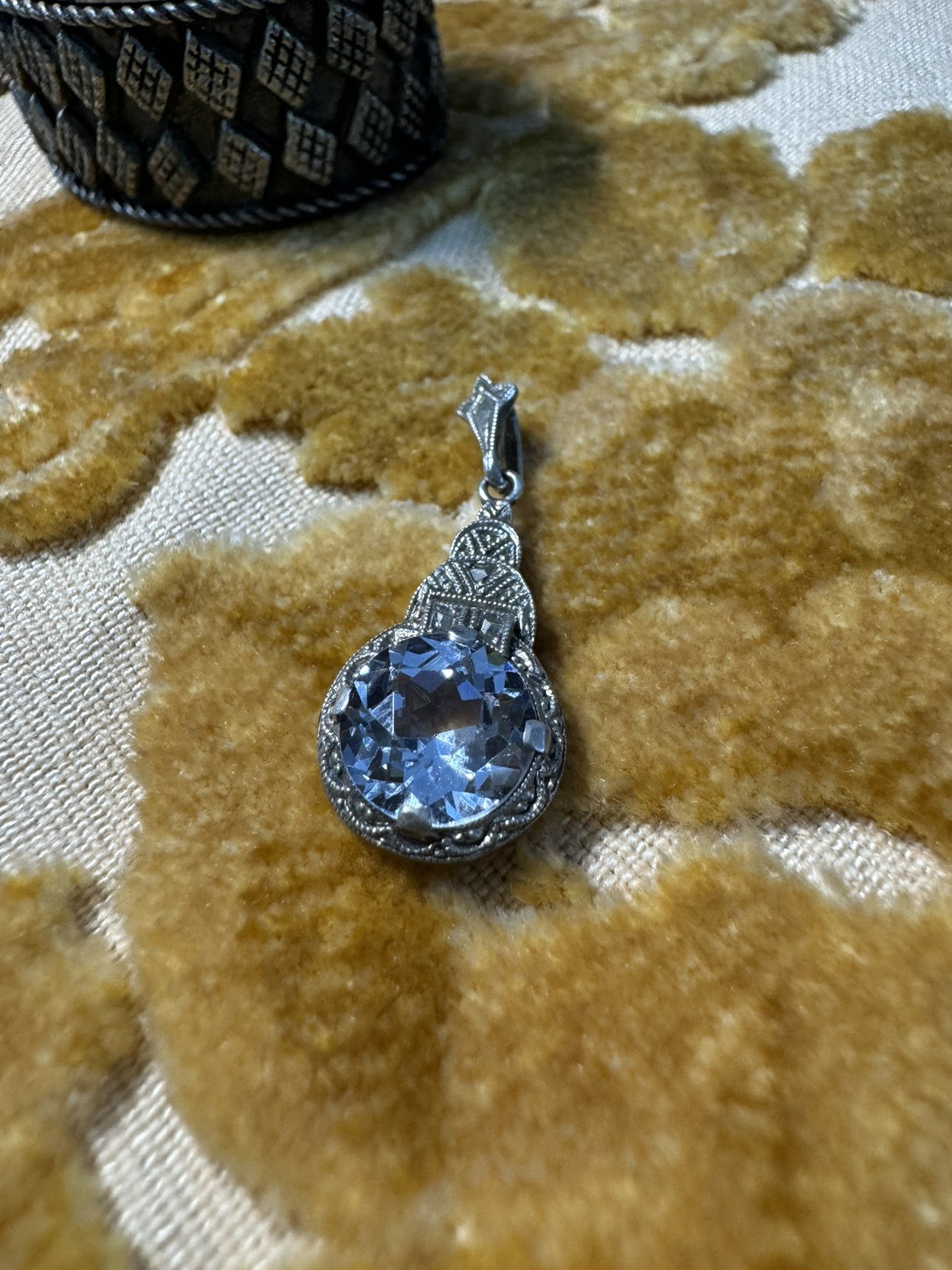 art deco时期吊坠 阿呆 德国古董首饰S925银 雕花项链 水滴形宫廷