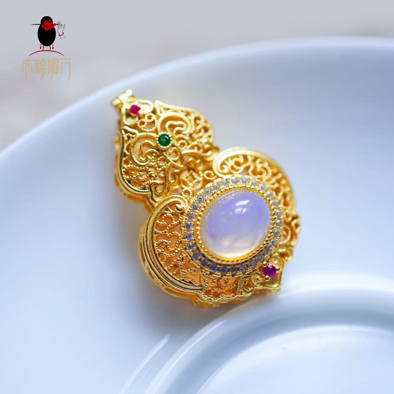 衣锦媚行 925银镀金琉璃蛋面花丝葫芦香囊吊坠镶嵌挂件饰品项链坠