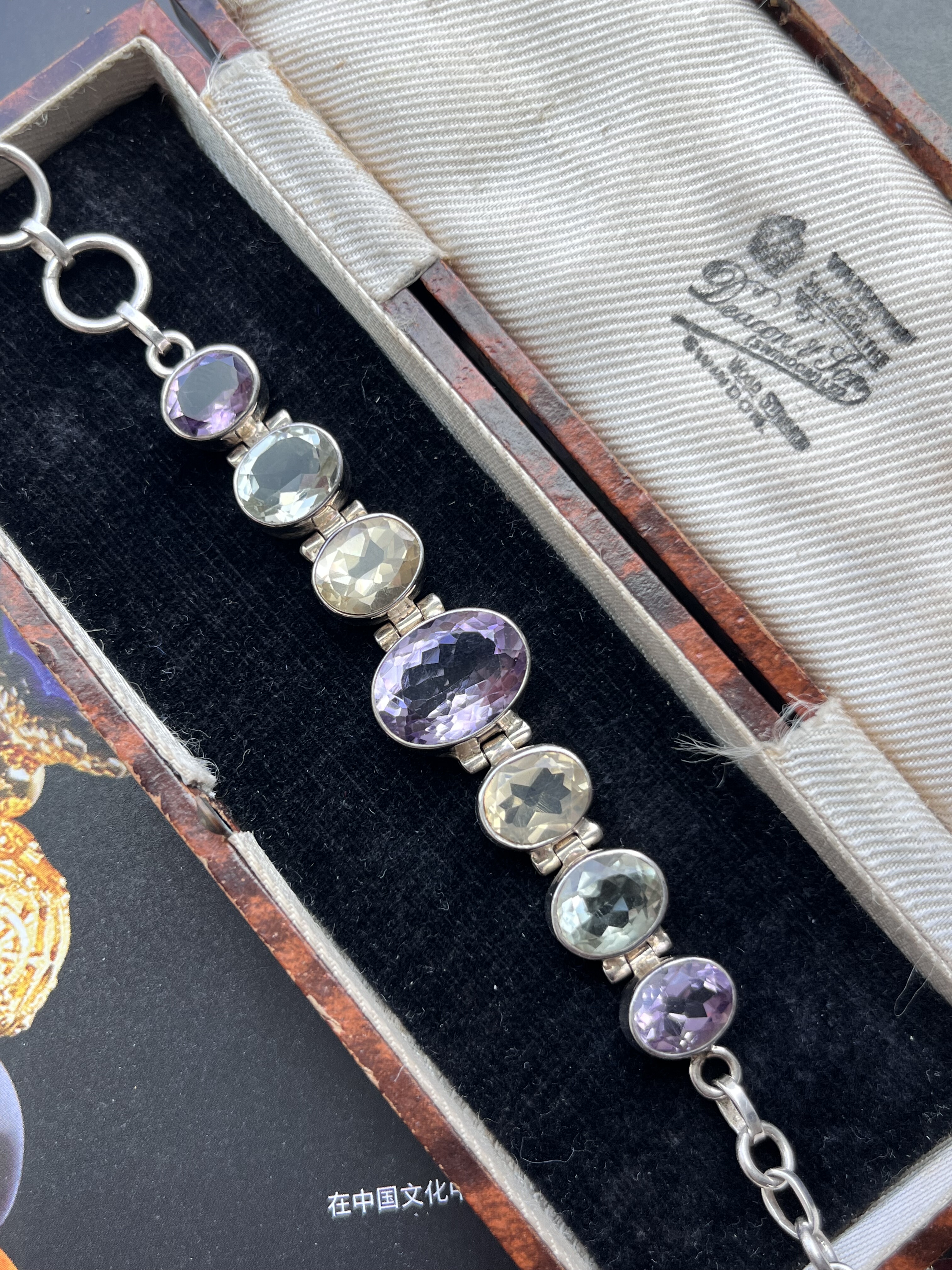 古董手链925镶天然水晶彩宝水晶手链多种颜色,链长19.5cm重23克