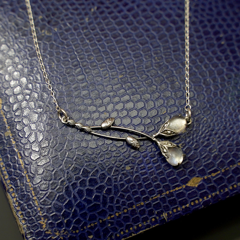 德国古董设计花苞复古花芽蓝月光通体925银项链一体链锁骨链阿呆
