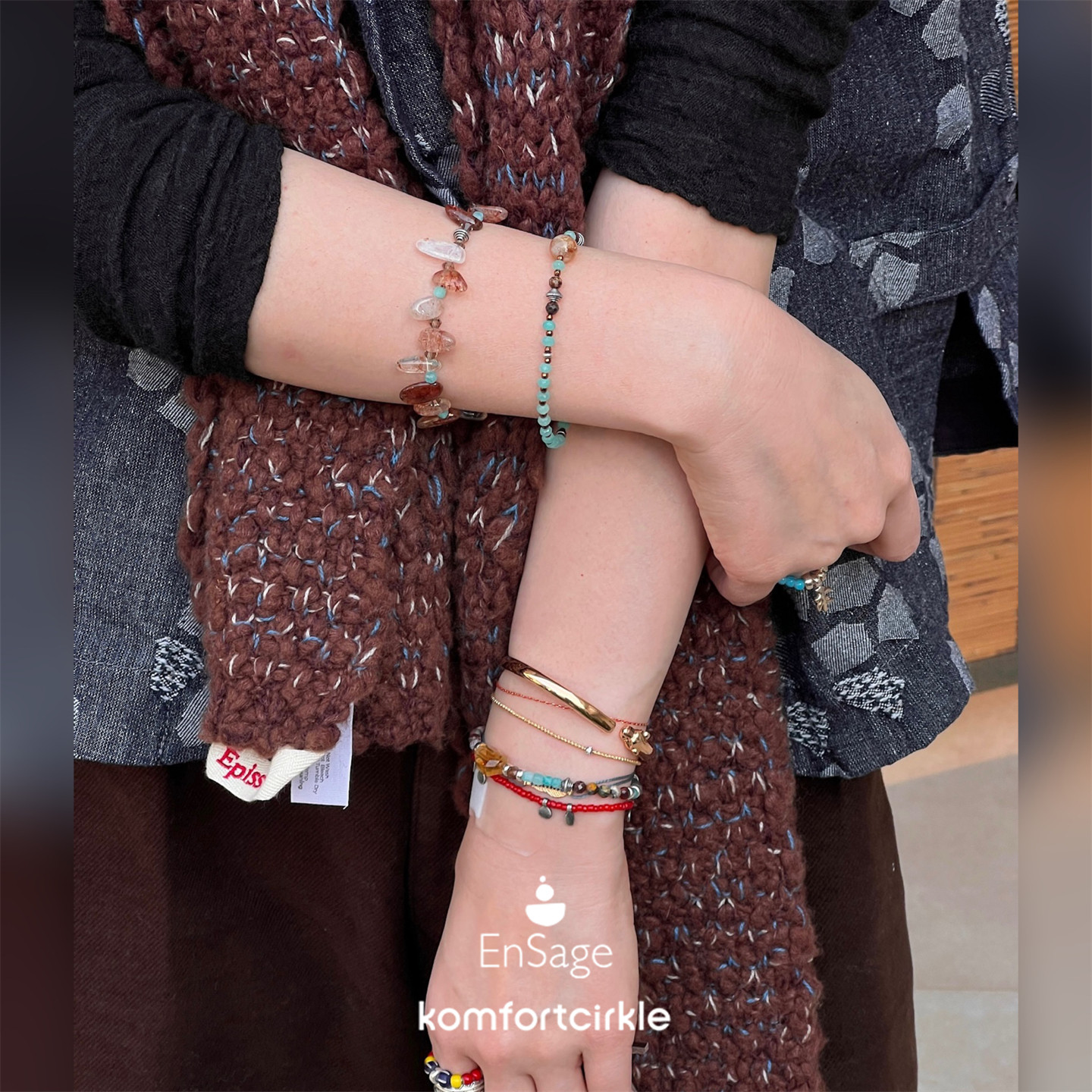 ENSAGE/APT702 古董琉璃珠手环 柔光茶光925银天然石串珠手串手链