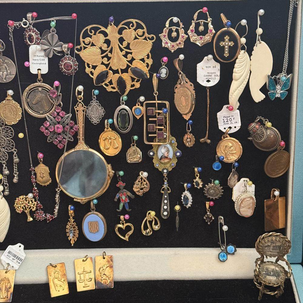 vintage法国古董市集店淘回新艺术浮雕彩色包金纯银星座金属吊坠