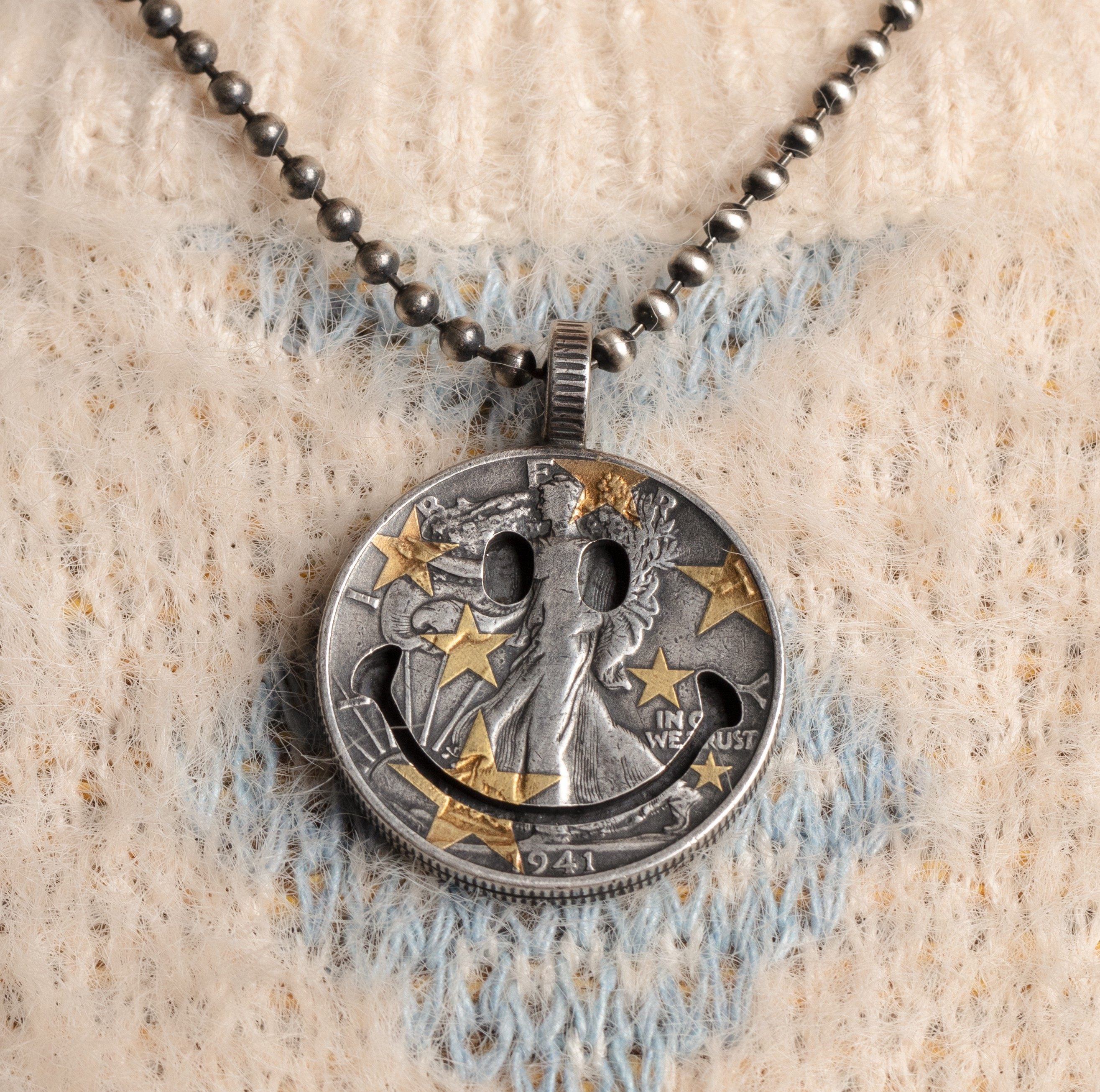 STZ原创美国古董银币笑脸幸运手工中号复古欧美风银币吊坠项链女