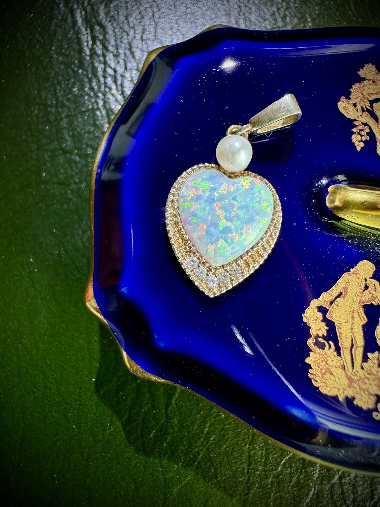 心形吊坠通体925银天然珍珠爱心银吊坠古董设计澳宝欧泊礼物女