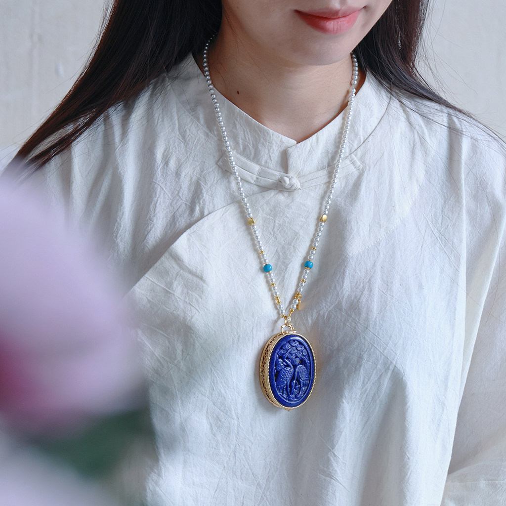 和合大仙人 原创自制S925纯银镀金 天然古董青金石香囊可打开吊坠