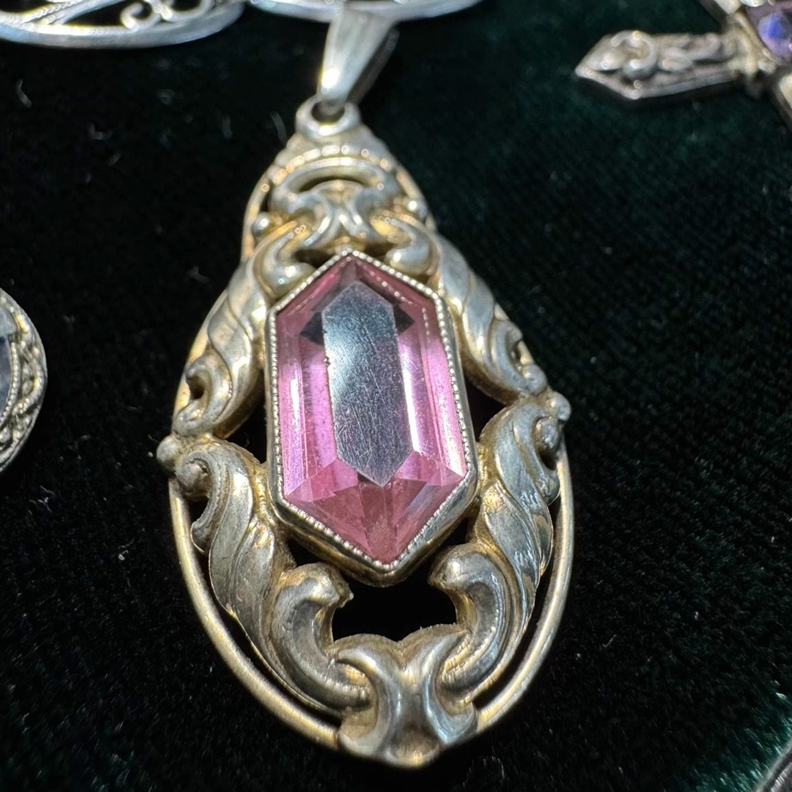 阿呆时期吊坠通体925银德国art deco古董设计粉色银吊坠礼物
