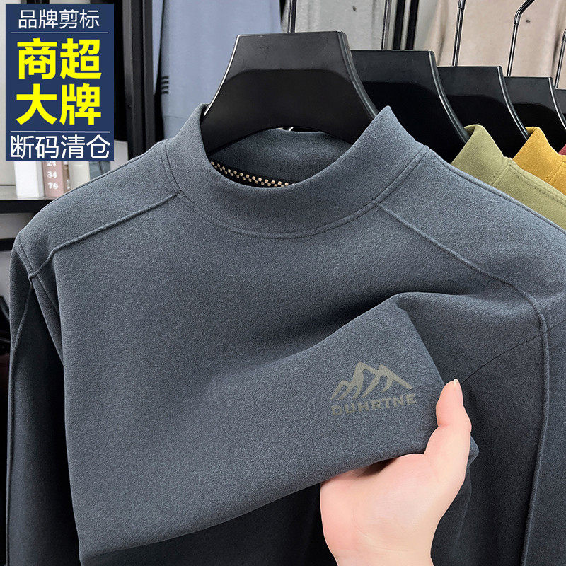 半高领德绒长袖T恤男中年加厚保暖内搭宽松秋冬季男士中领打底衫