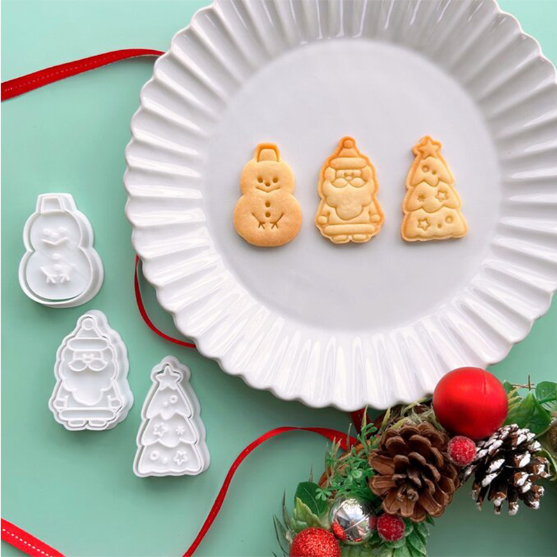 圣诞节卡通饼干模具家用圣诞树姜饼人3D按压曲奇切模翻糖烘焙工具