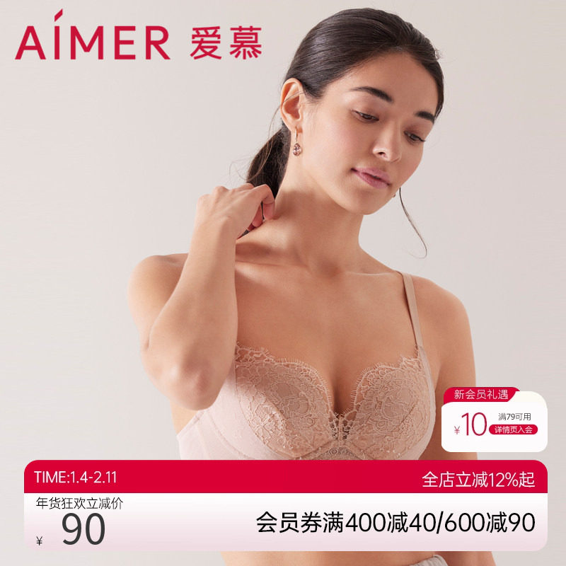 爱慕官方正品新款内衣 3/4无钢圈中厚模杯蕾丝聚拢文胸AM174501