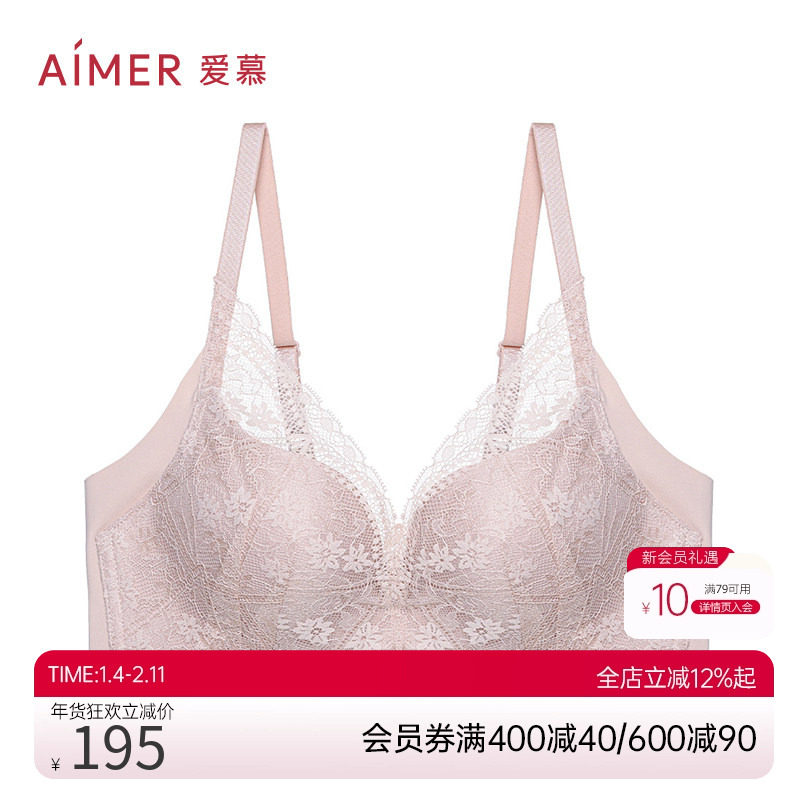爱慕自然脉络内衣女3/4无钢圈中厚模杯小胸聚拢蕾丝文胸AM17B611