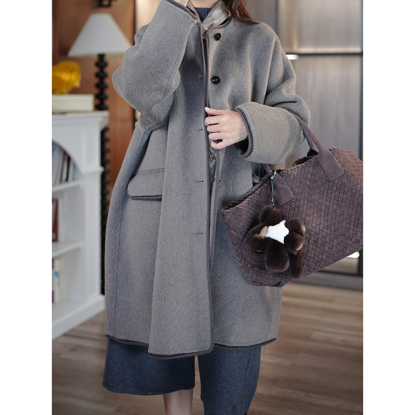 6号衣橱 l 简约松驰百搭英皇贝贝羊驼毛针织捆边圆领廓形大衣外套