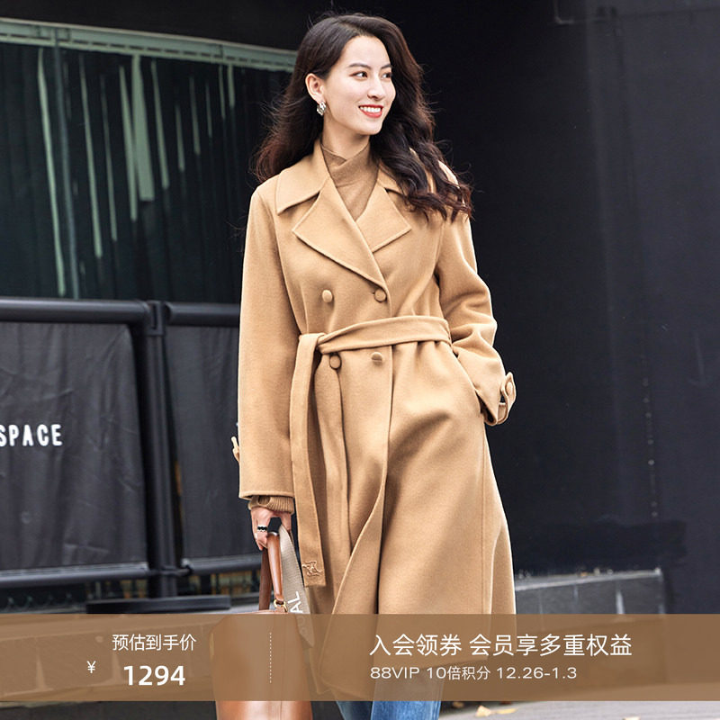 VASSE美蟹 经典高级骆驼绒羊毛双面大衣女秋保暖慵懒廓形毛呢外套
