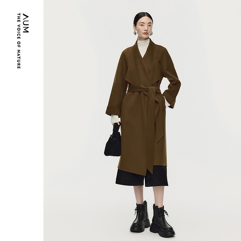 【天猫臻选】AUM噢姆2025年冬季新款长款双面呢极简廓形大衣外套
