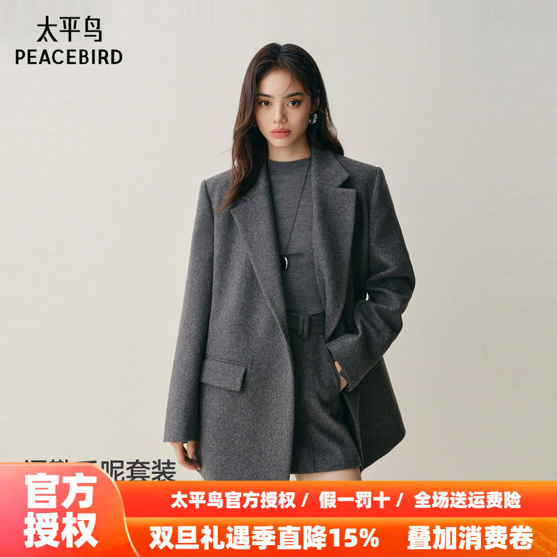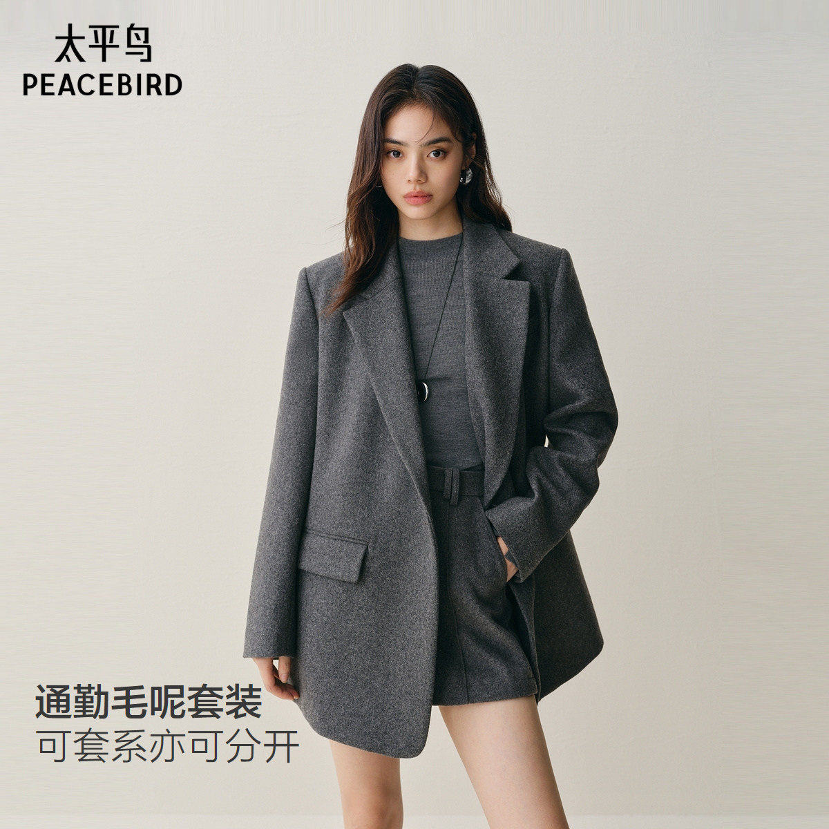 太平鸟甄毛系列斜门襟西装短大衣25年新款立体廓形大衣外套女m
