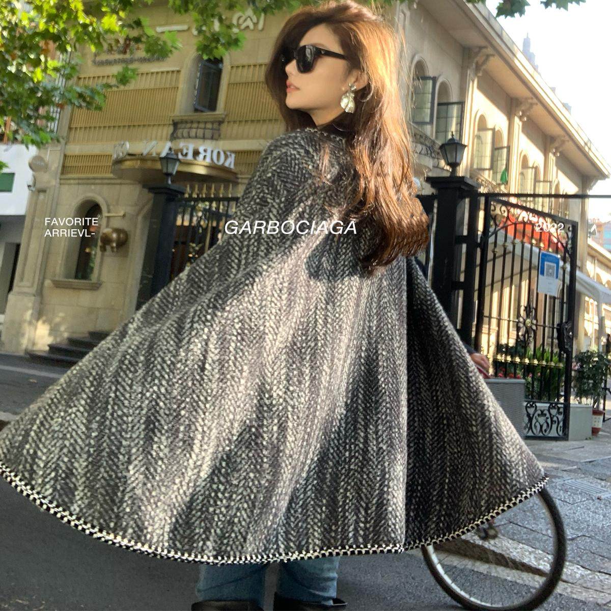Garbociaga 设计感小香风斗篷羊毛披肩宽松廓形大衣外套 1138
