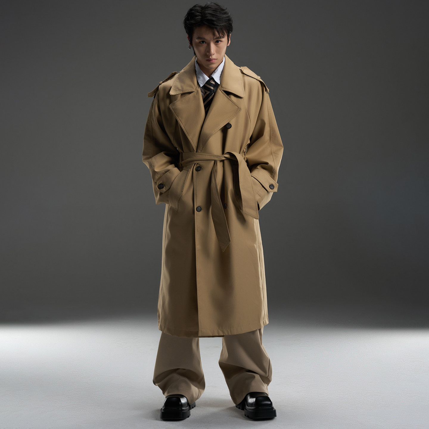 水曜日定休 复古新中式高级感中长款风衣男设计感廓形大衣外套ins