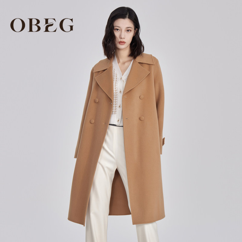 OBEG欧碧倩廓形大衣外套女秋冬季系带羊毛双面呢长款10444065