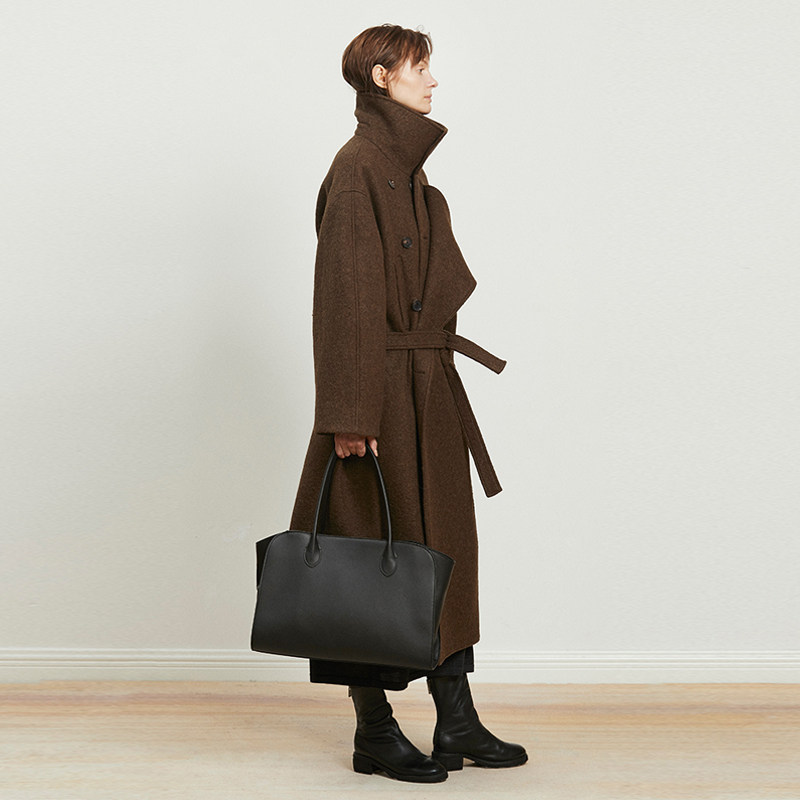 TANG TOWN 自制 都市轻奢 小山羊绒手工双面呢优雅廓形大衣外套