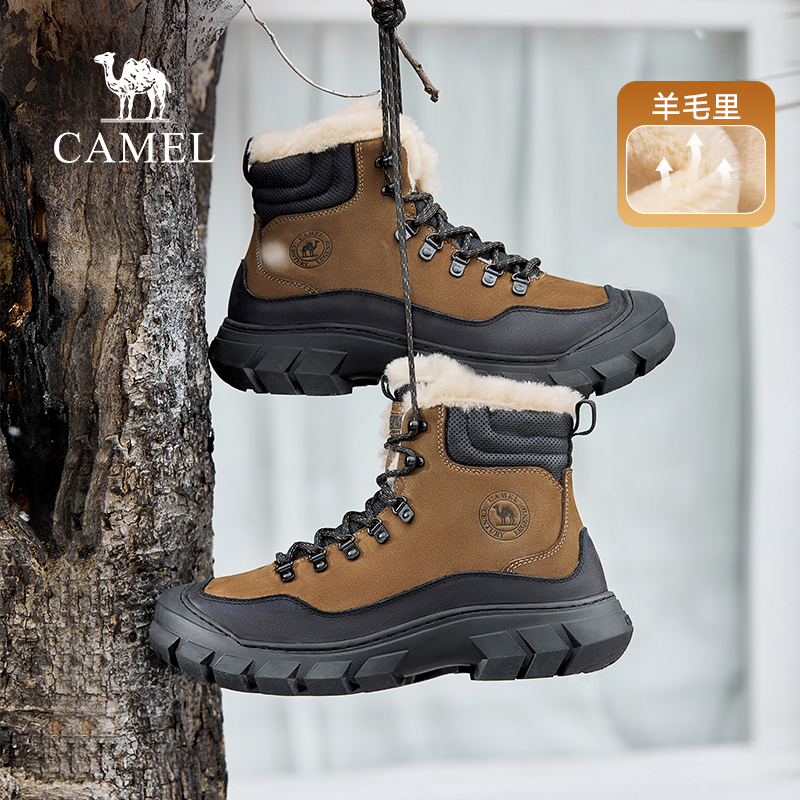 骆驼2025冬季新款真毛保暖防滑防撞舒适马丁靴户外高帮徒步男鞋