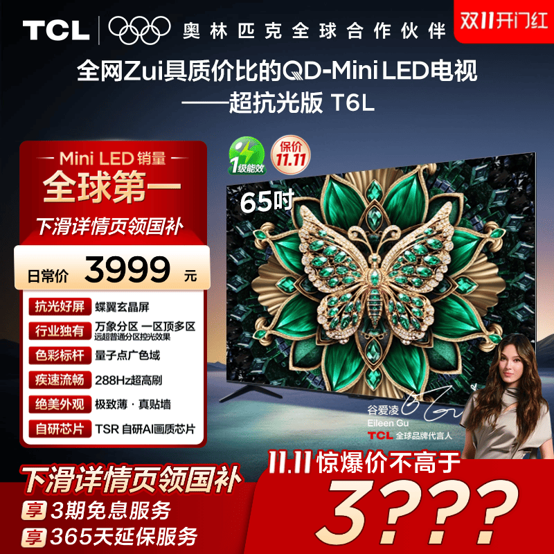 TCL 65英寸T6L QD-Mini LED 万象分区 tcl电视机以旧换新补贴官方
