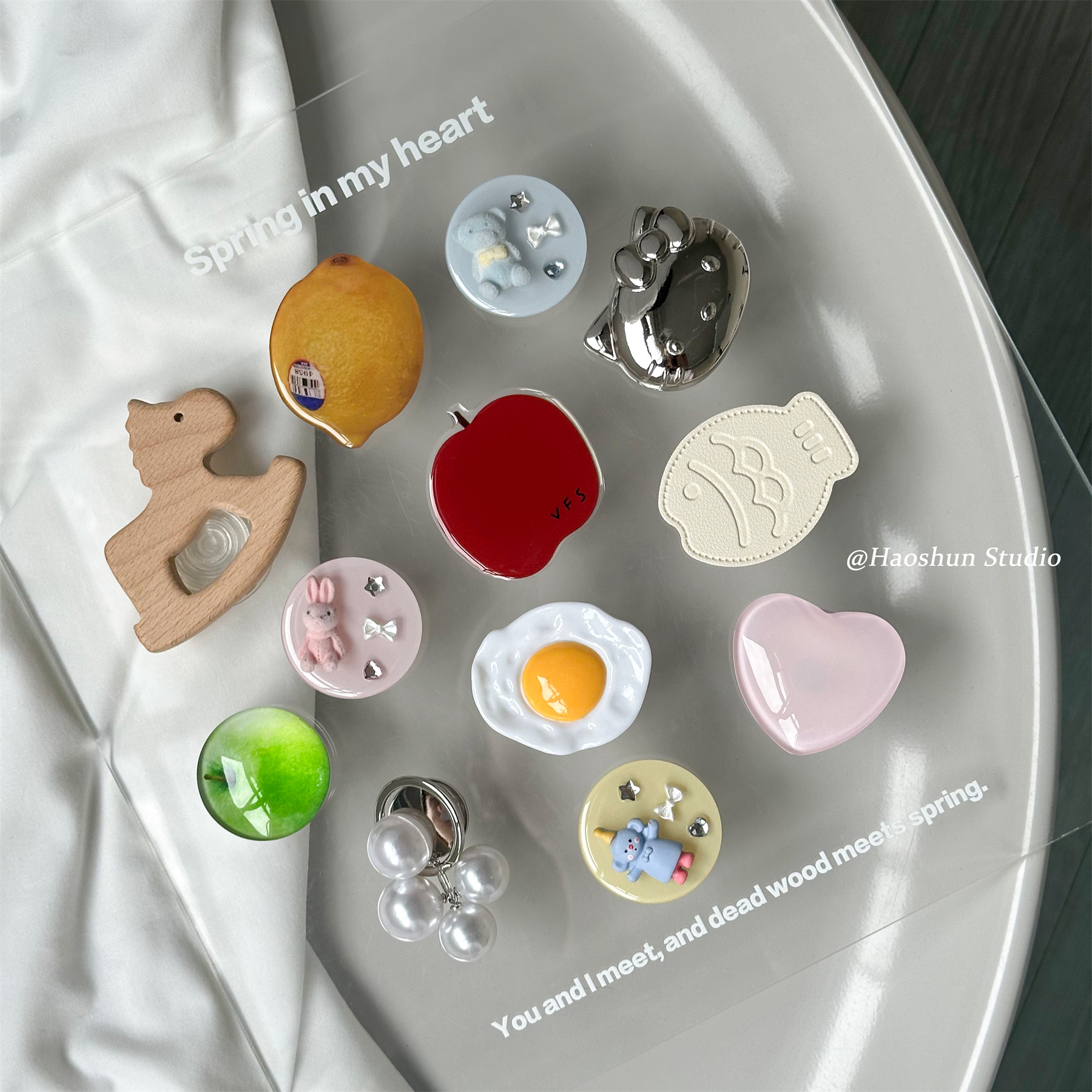 纽扣花朵支架撞色纽扣绳结支架创意旋转式粘硅胶气囊支架通用手机支架支撑便携360旋转桌面支撑彩色ins风