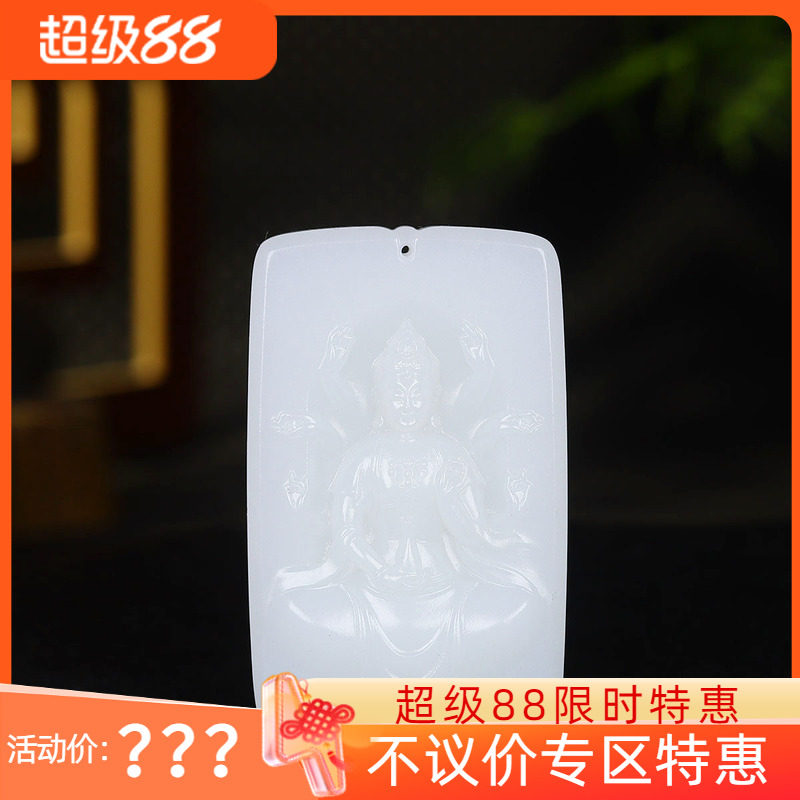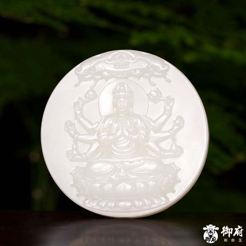 (古晨珠宝)新疆和田玉白玉千手观音挂件吊坠玉坠观音护佑67g