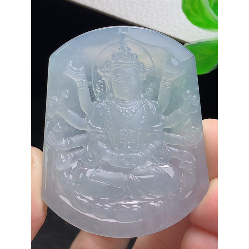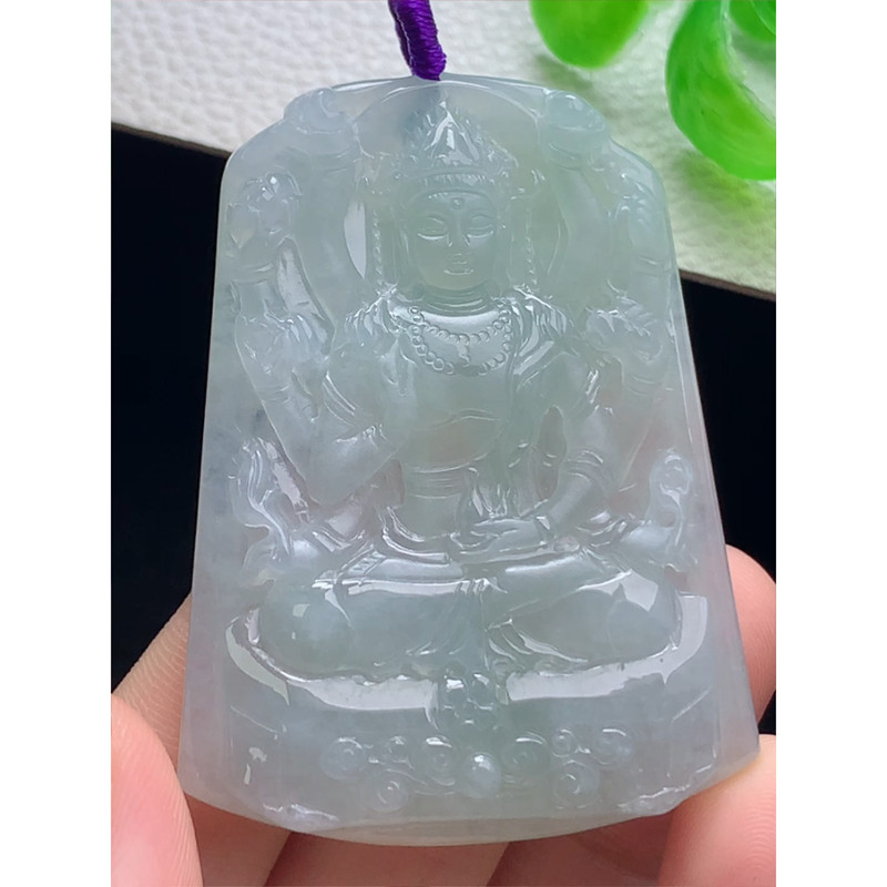 缅甸天然A货玉石翡翠 老坑冰种 手工精雕 糯种千手观音菩萨吊坠