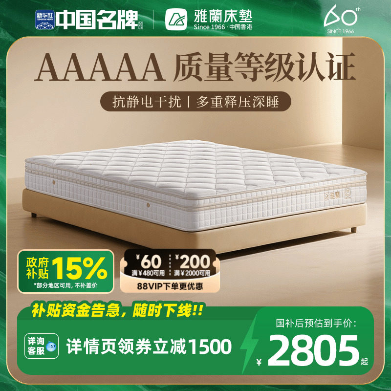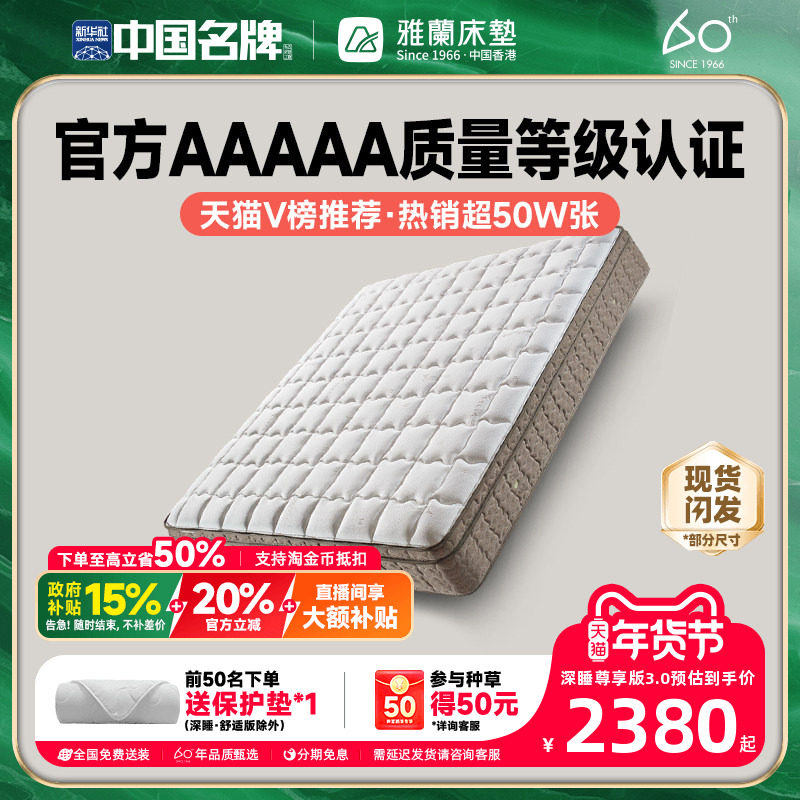 【有度旗舰】雅兰官方AAAAA级乳胶弹簧床垫硬黄麻席梦思名牌十大