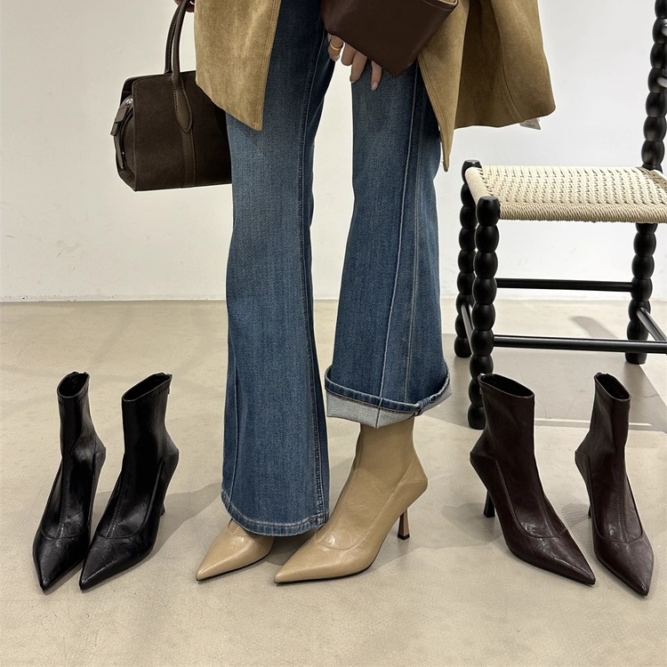 单里加绒可选2025新款秋季细跟高跟短筒瘦瘦靴韩版尖头中跟短靴女