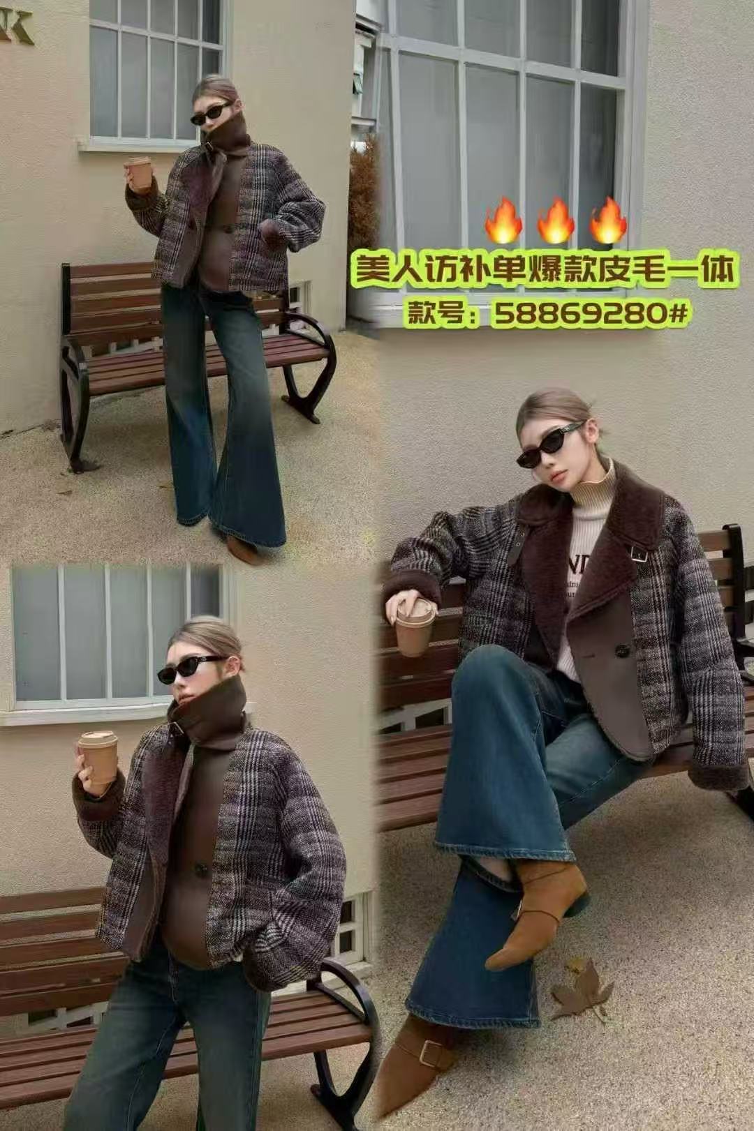 欧洲站2025冬季新款 设计师款小众撞色格子羊羔毛羊毛羽绒服外套