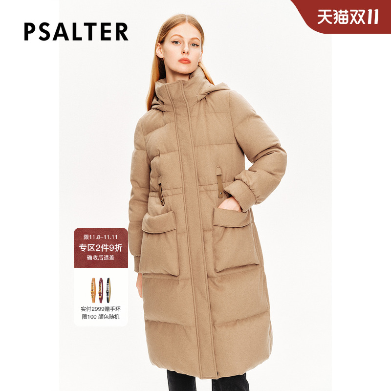 PSALTER诗篇鹅绒服美拉德长款抽绳立领连帽羊毛羽绒服冬款