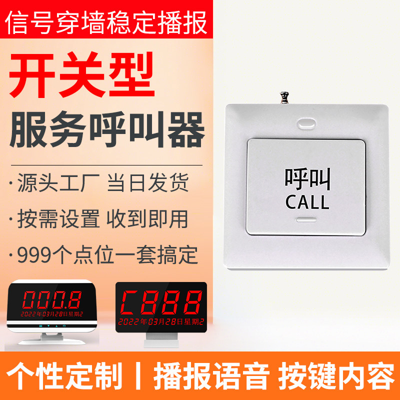 设备带呼叫器茶楼房间棋牌室包厢无线服务铃餐厅饭店包房医院餐饮店包间专用远程呼叫铃唤叫器86盒开关分机