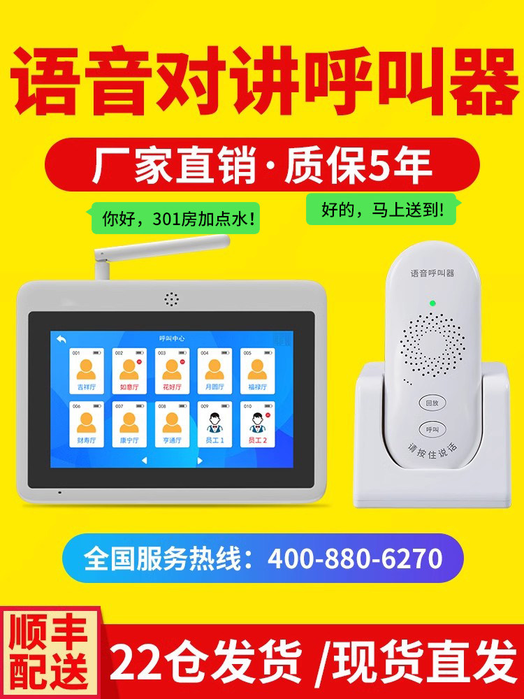 无线对讲呼叫器餐厅双向对讲呼叫按铃茶楼机包厢呼唤饭店养老院医院呼叫点餐月子会所服务玲棋牌室语音服务铃