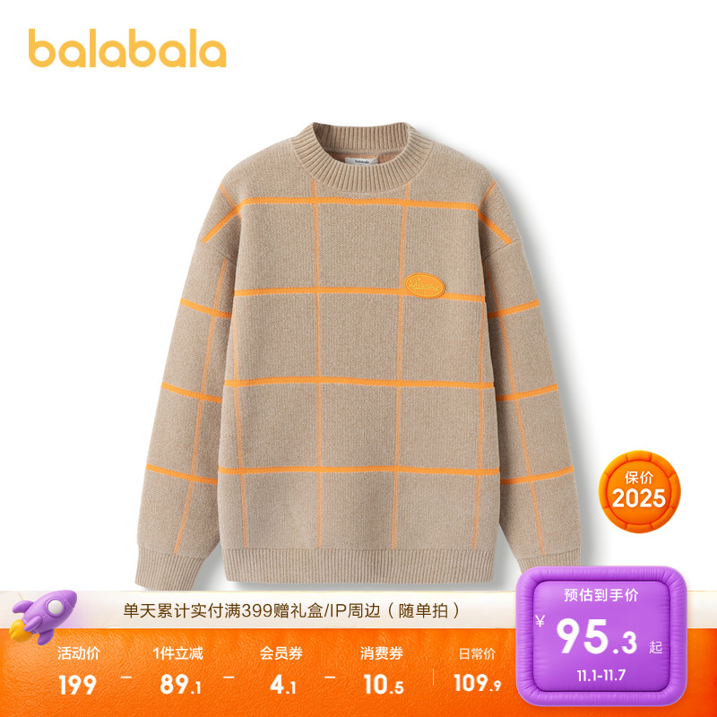 巴拉巴拉儿童毛衣中大童宝宝加厚针织衫秋冬款男童女童套头打底孩