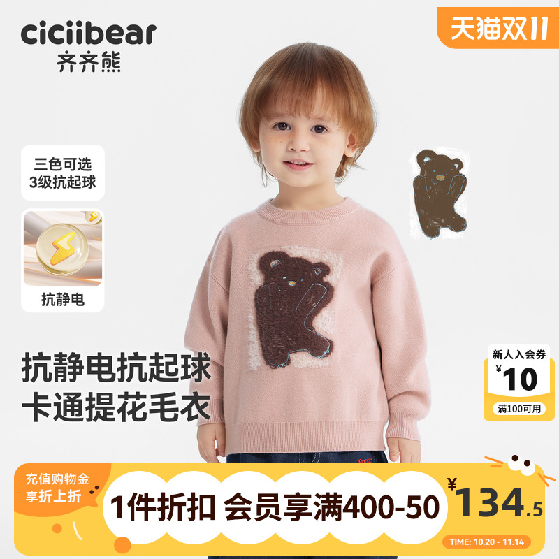 [柔柔熊][力安同款]齐齐熊男童毛衣冬款套头加厚宝宝上衣儿童新款
