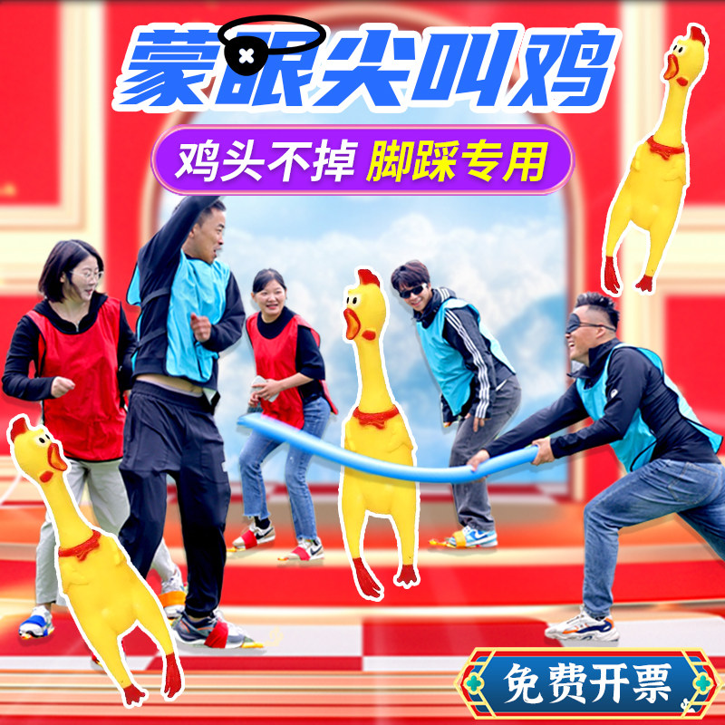 蒙眼尖叫鸡打人互动户外训练小游戏道具脚踩惨叫鸡互打棒趣味玩具