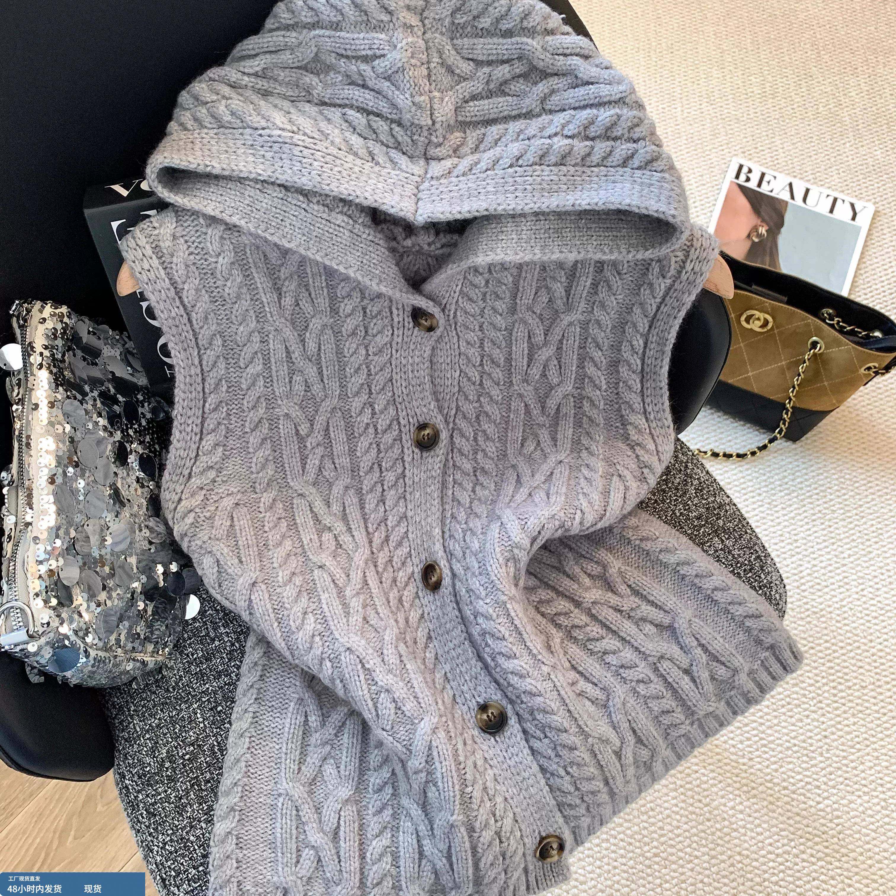 专柜撤回剪标韩系氛围感穿搭连帽麻花马甲女秋冬新款坎肩叠穿毛衣