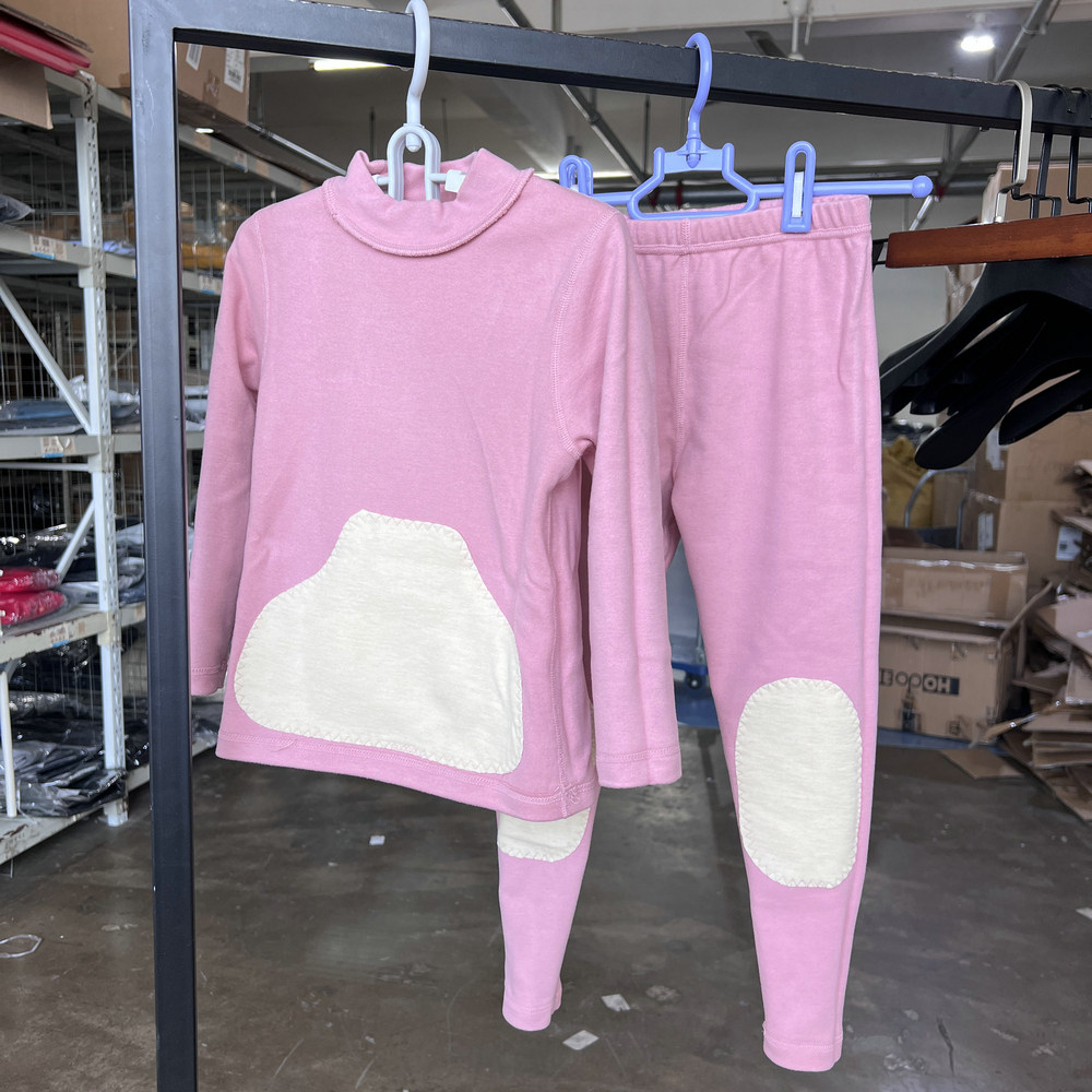 高领儿童保暖内衣冬季贴片加绒加厚套头秋衣秋裤棉毛衫棉毛裤女童