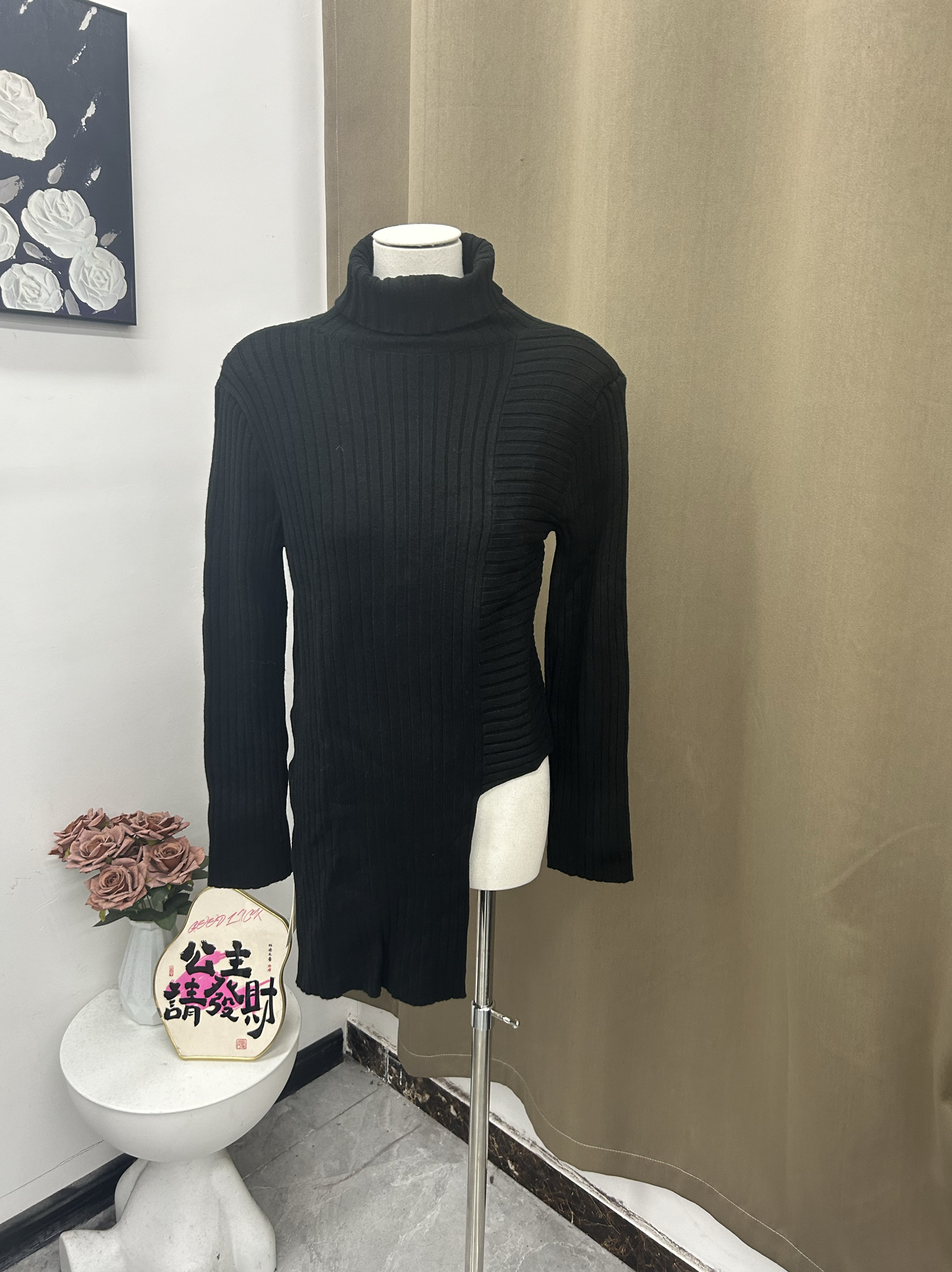 2025秋季新款女装高领毛衣女长袖套头打底衫不规则下摆小众设计风
