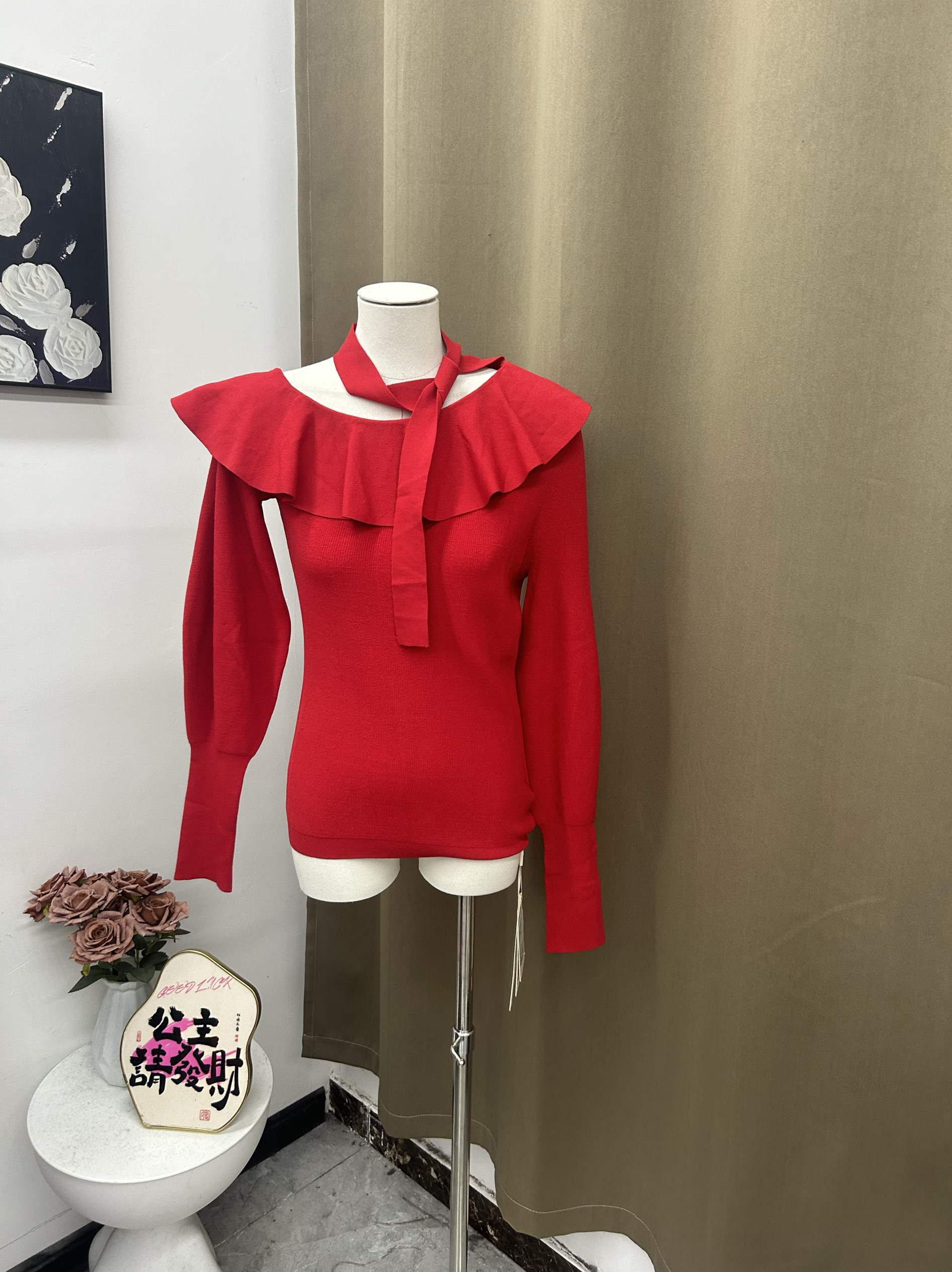 - 荷叶领毛衣女
